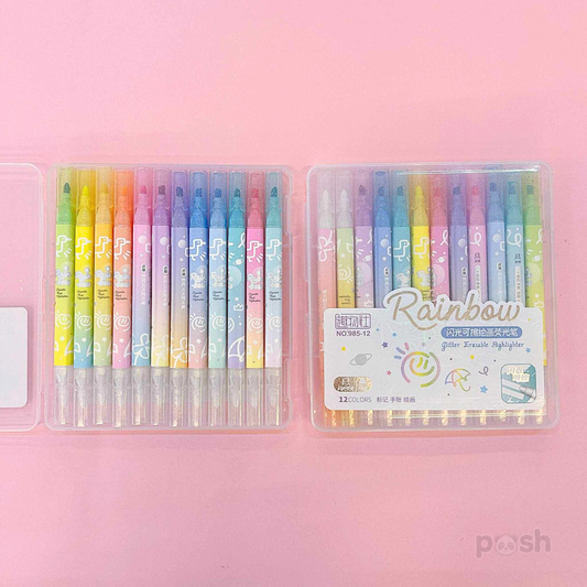Erasable Highlighter with Glitters 12 PCS Set 985-12