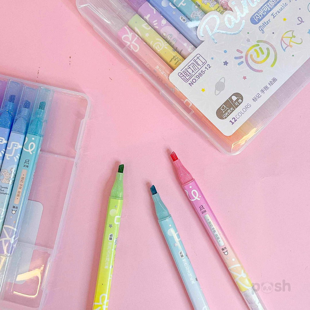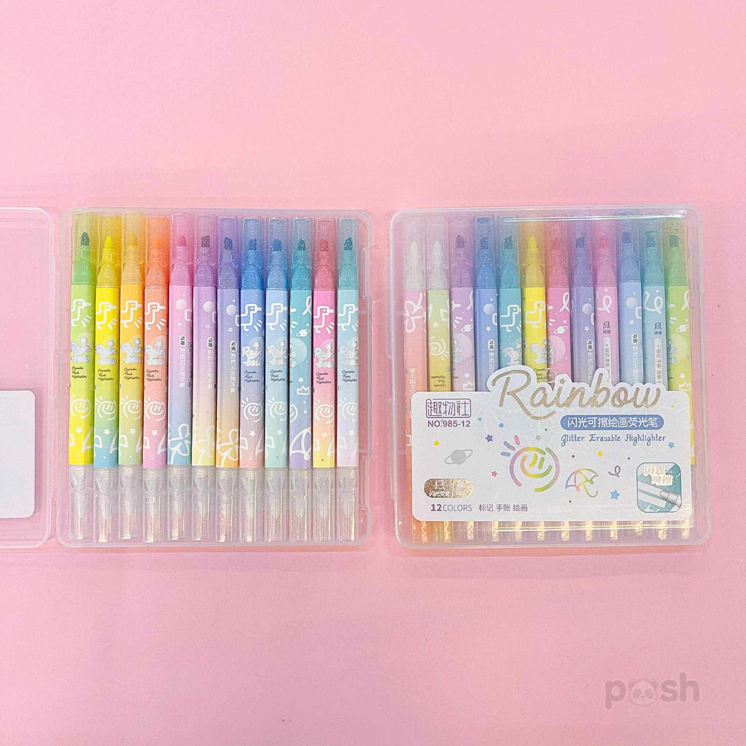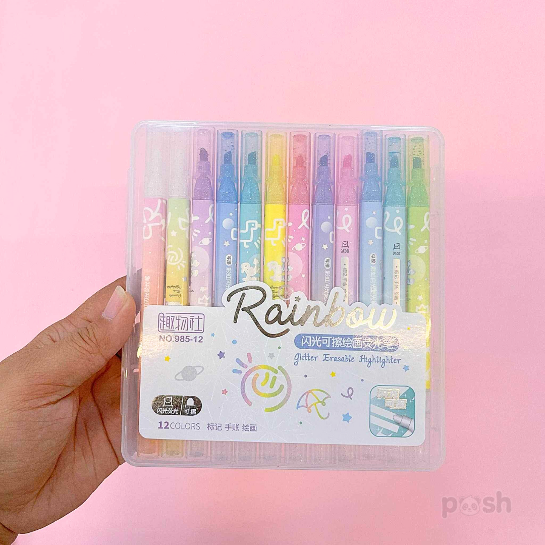 Erasable Highlighter with Glitters 12 PCS Set 985-12